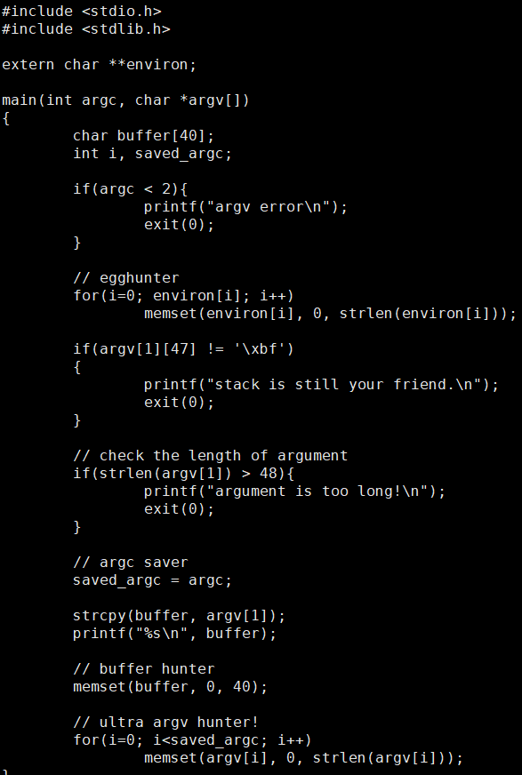 인자 갯수를 saved_argc에 저장해 놓고 memset으로 초기화 시켜버린다.