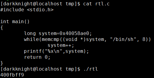 /bin/sh 주소 : 0x400fbff9 (little endian : \xf9\xbf\x0f\x40)