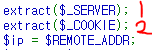 extract 함수를 이용해 $_SERVER 심볼 테이블로 변수를 가져온다.