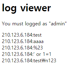 해결해야 되는 부분 : LOG INJECTION이라고 한다. 로그를 조작해서 admin 권한을 따내라는 것 같다.
