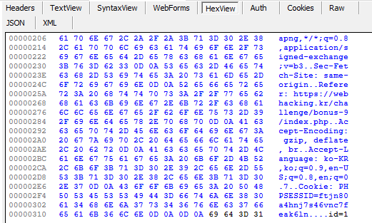 패킷의 HexView를 보니 내가 입력했던 값이 들어가 있다.