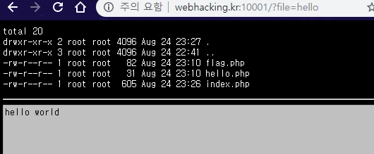 마찬가지로 File Inclusion 취약점은 같지만 파일을 포함시킬 때 해당 파일이 공격대상 서버에 위치 한다는 점에서 RFI와 구별된다.(RFI : 대상 파일이 원격지에 위치, LFI : 대상 파일이 공격대상 서버에 위치)