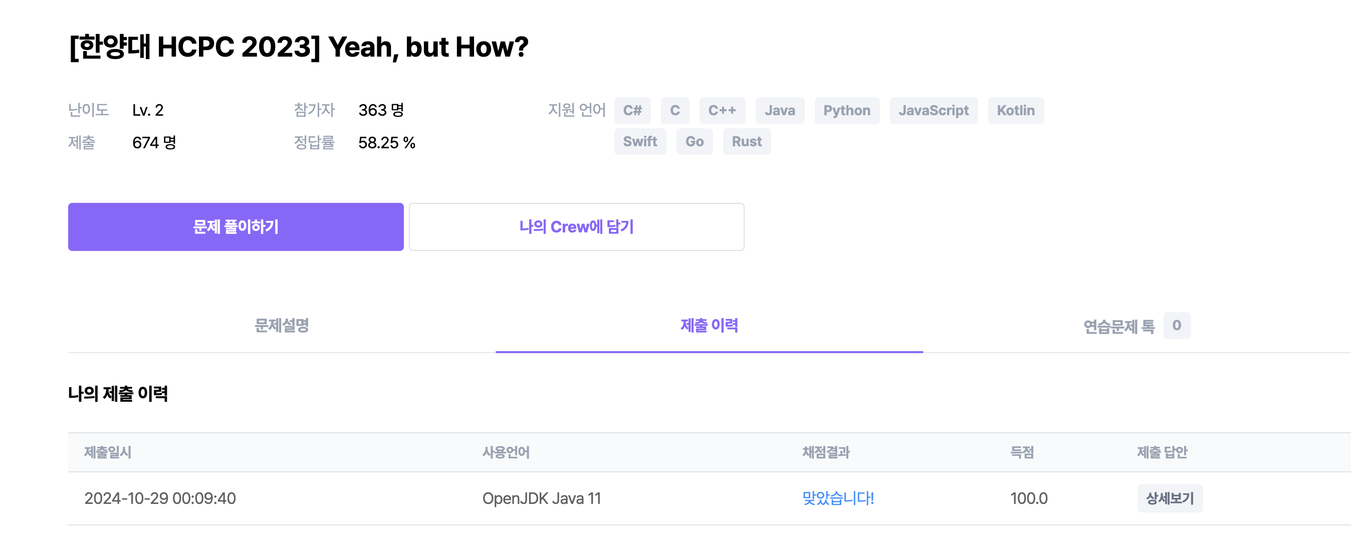 생각보다 풀이는 간단했고 테스트 케이스를 통과하지 않아도 되는 문제도 있다는게 신기했다.